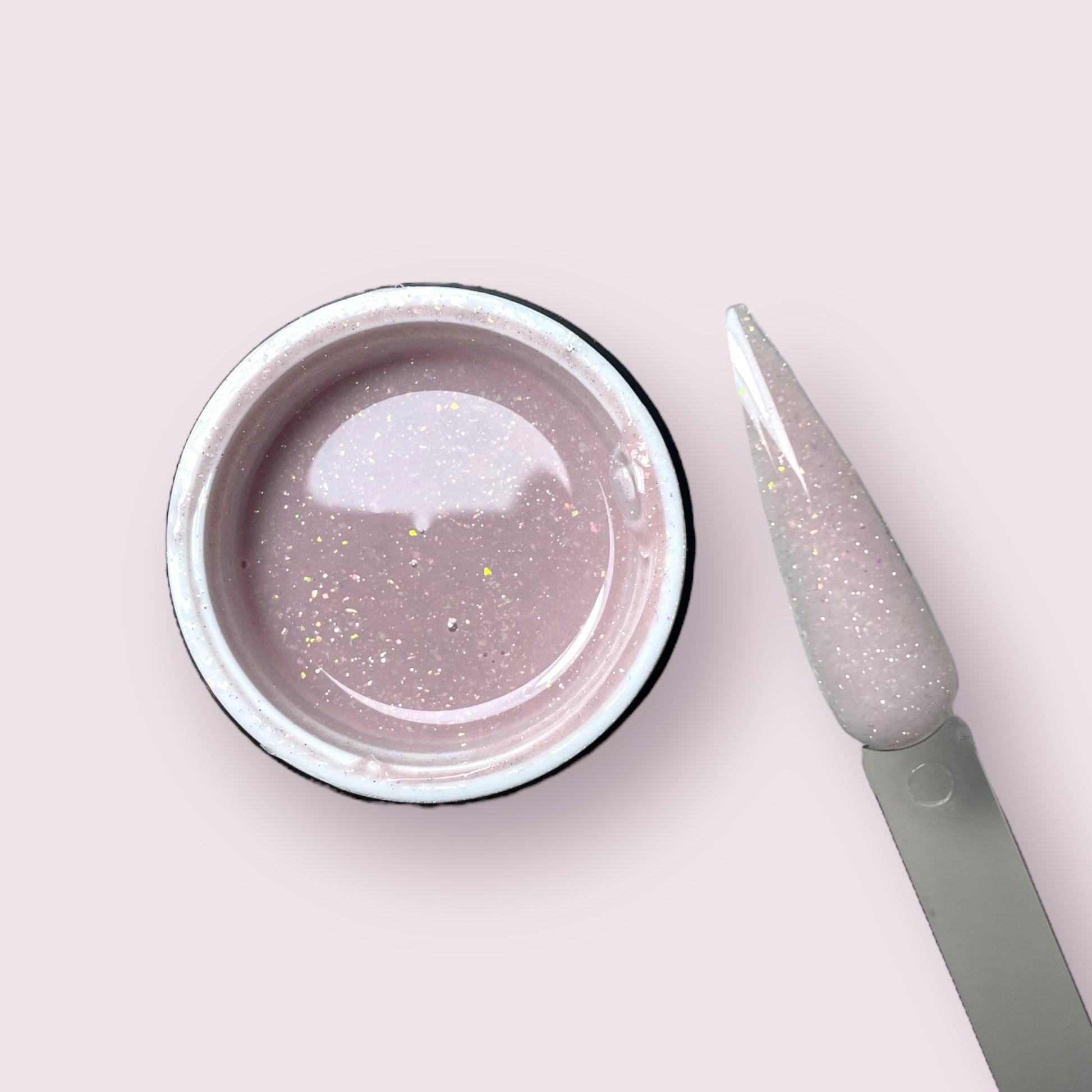 Een milky nude met verfijnde glitters voor een ultra chique finish.