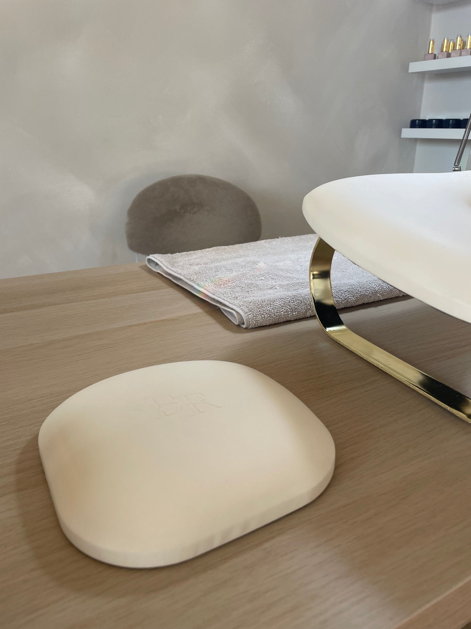 Het compacte en zachte ontwerp maakt het elleboogkussen ideaal voor dagelijks professioneel gebruik. Perfect tijdens precisiewerk zoals vijlen, nail art en detailwerk. De luxe afwerking en neutrale kleur sluiten naadloos aan bij een professionele nagelstudio-inrichting en natuurlijk kan ons logo in dit kussen niet ontbreken
