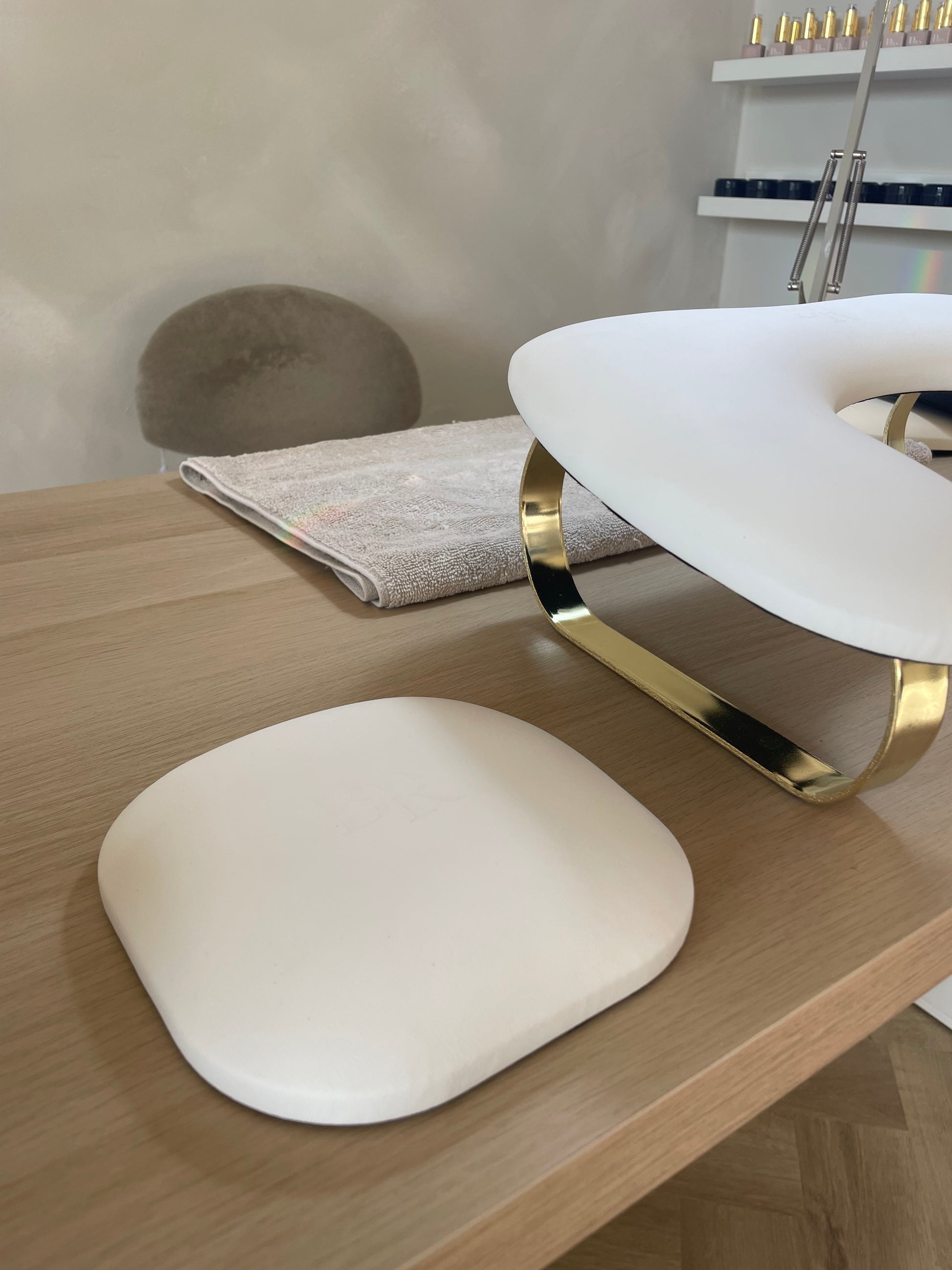 Het compacte en zachte ontwerp maakt het elleboogkussen ideaal voor dagelijks professioneel gebruik. Perfect tijdens precisiewerk zoals vijlen, nail art en detailwerk. De luxe afwerking en neutrale kleur sluiten naadloos aan bij een professionele nagelstudio-inrichting en natuurlijk kan ons logo in dit kussen niet ontbreken